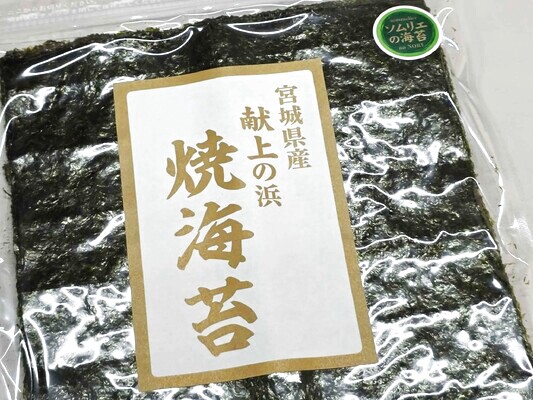 奥州一ノ宮である塩釜神社では毎年、最も品質のよい新海苔を献上しているのだそうです。その審査員※であり、海苔のソムリエでもある今野商店の社長自慢の焼海苔です。